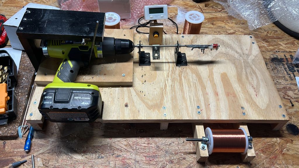 This is the pickup winding machine that was built and designed for Fender Rhodes pickups. It has a turn counter that keeps track of the 2,800 turns needed to achieve the correct electrical parameters needed to function correctly.